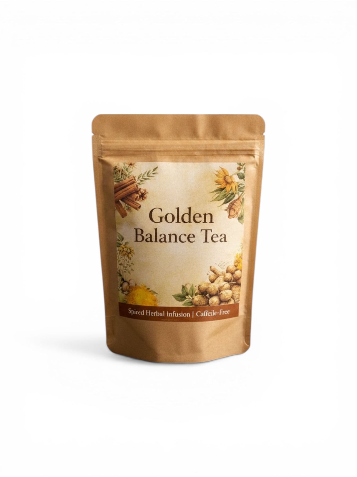 Golden Balance Tea is a warming herbal blend crafted with a selection of well-known spices traditionally used in everyday wellness routines. Featuring cinnamon, turmeric, ginger, and clove, this blend brings together bold, aromatic ingredients that create a rich and comforting tea experience.